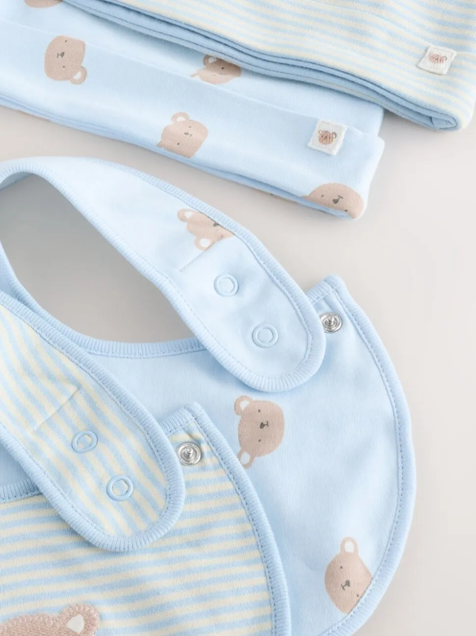 Ours bleu – Ensemble 4 pièces bonnet et bavoirs bébé (0-18mois)