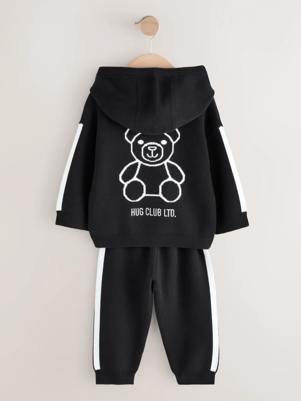 Ours Noir/Blanc – Ensemble Sweat-shirt à capuche et Survêtement en maille (3mois-7ans)