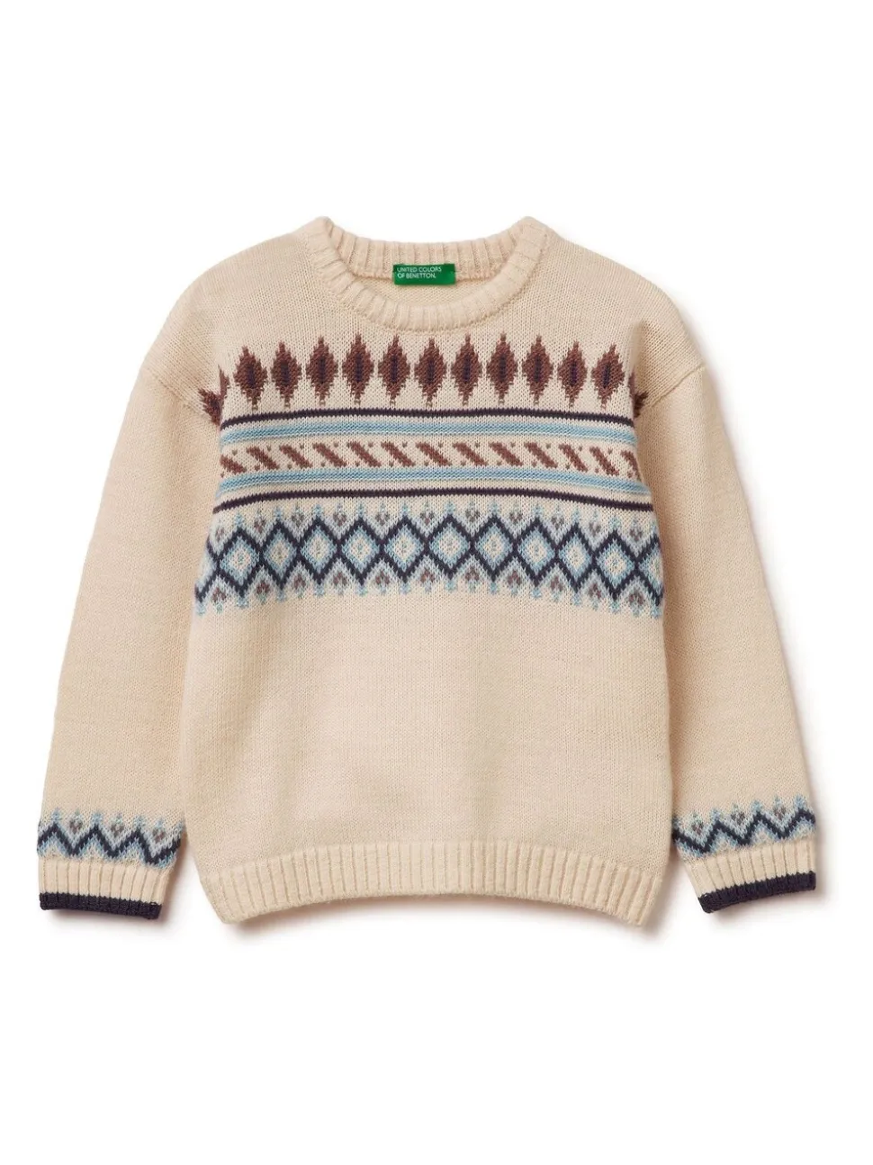 Pull Benetton Crème Fair Isle en maille