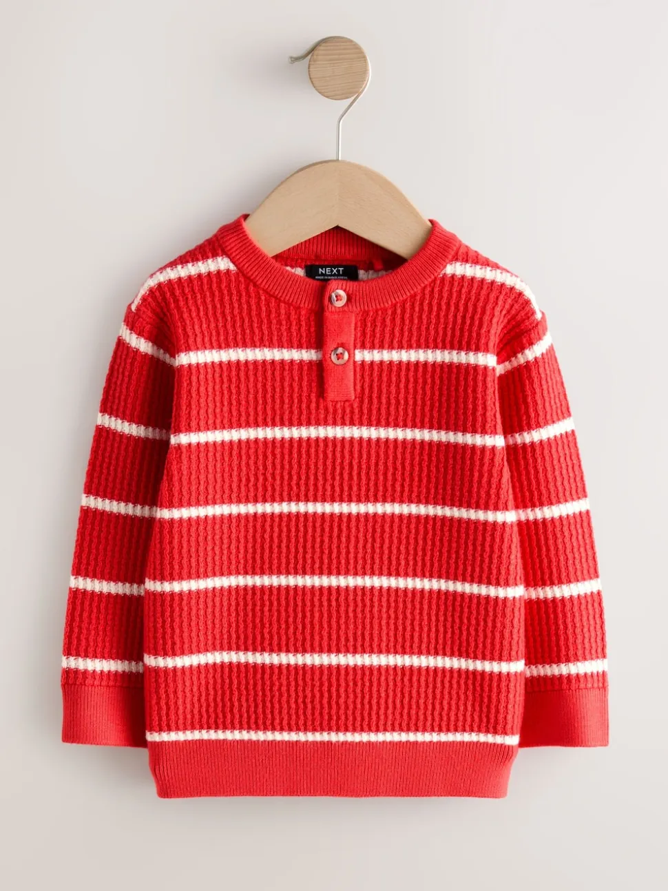 Rouge/Ecru – Pull Henley à rayures (3mois-7ans)