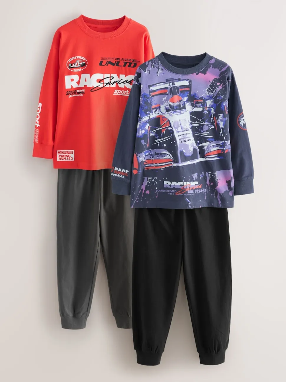 Rouge/Noir – Lot de 2 pyjamas à manches longues (3-16ans)