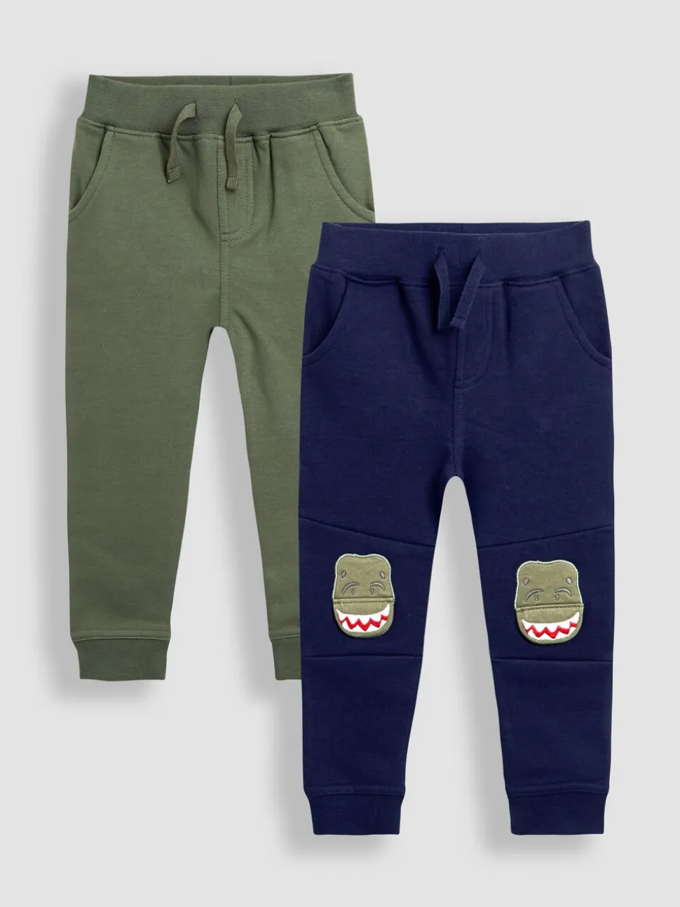 T-Rex bleu marine – Lot de 2pantalons de jogging JoJo Maman Bébé à motif appliqué genou et uni