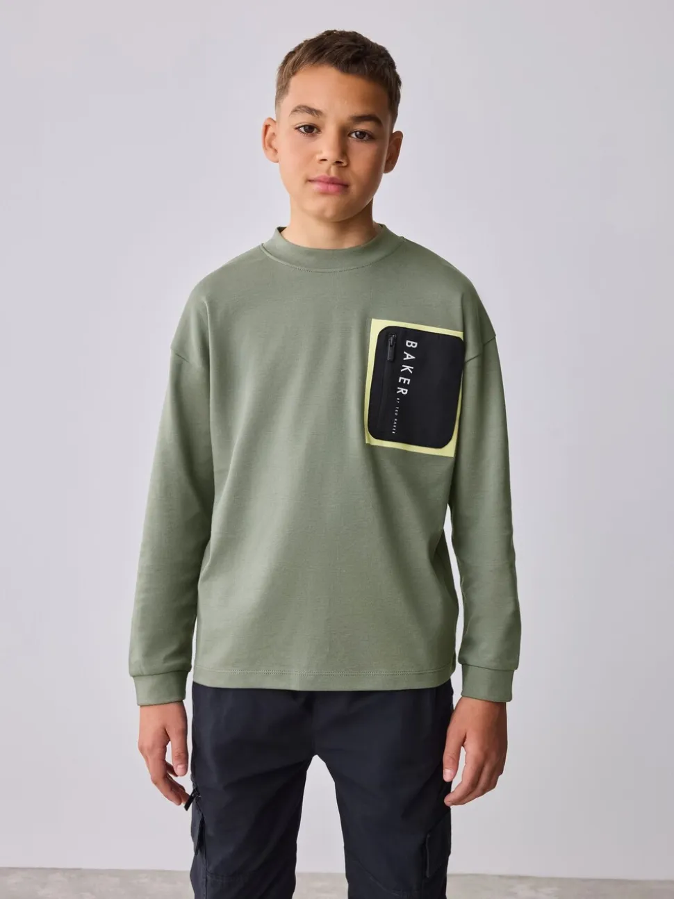 Vert – T-shirt Baker by Ted Baker poids lourd à manches longues